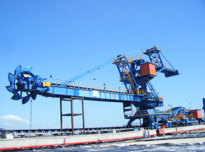 臂式斗輪堆取料機(jī)可實(shí)現(xiàn)跨越料堆,堆取礦石、原煤等多種散狀物料,實(shí)現(xiàn)倉(cāng)儲(chǔ)物料連續(xù)作業(yè)的大型裝卸設(shè)備。主要應(yīng)用于電力、冶金、煤炭、建材、港口和化工等行業(yè)的強(qiáng)調(diào)倉(cāng)儲(chǔ)沒(méi)有混勻要求的條形儲(chǔ)料場(chǎng)。