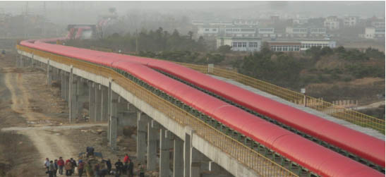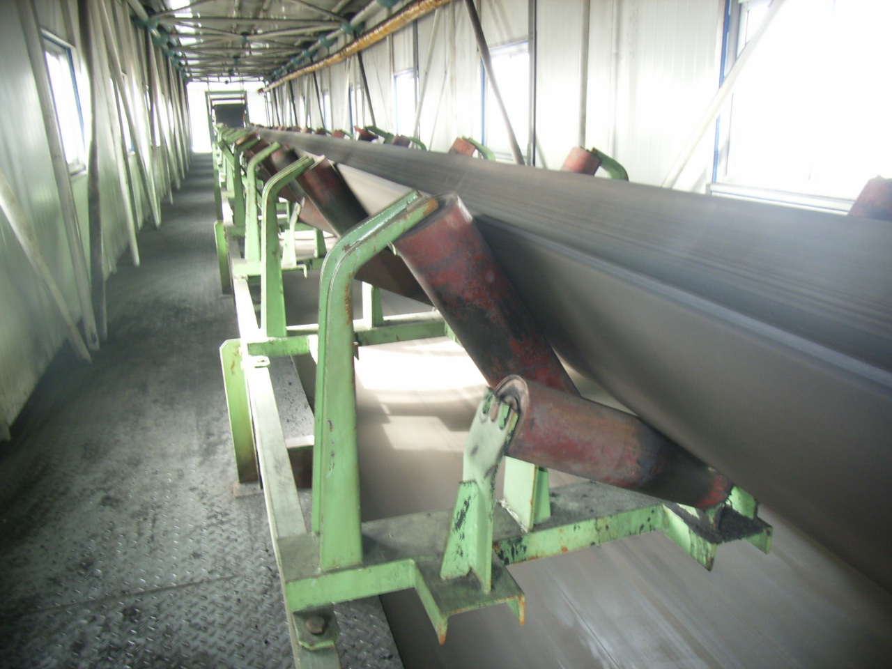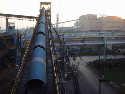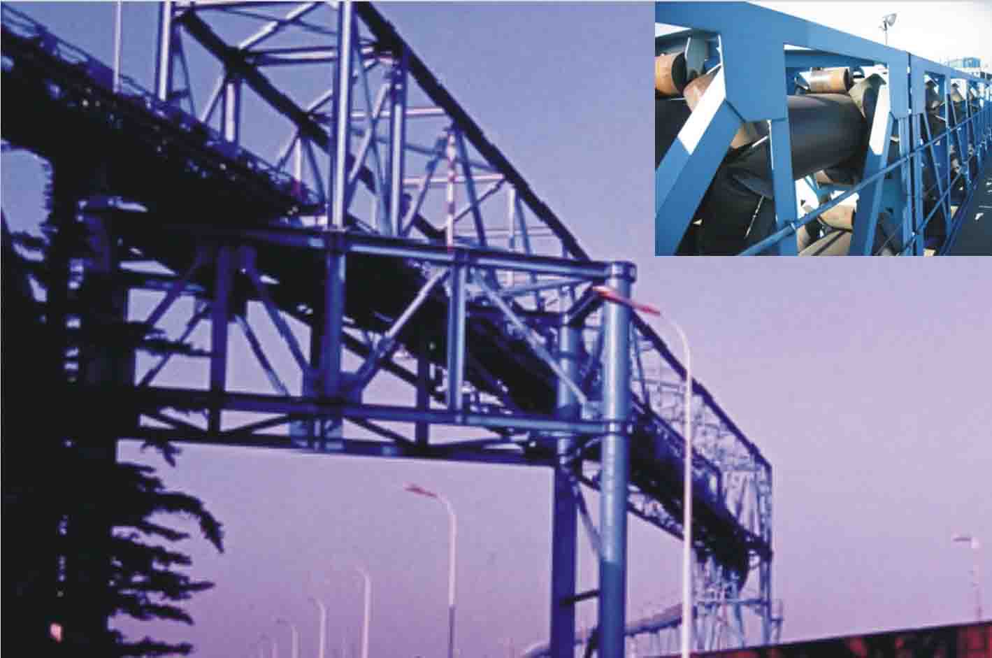 我公司所生產(chǎn)的帶式輸送機(jī),首先是運(yùn)行可靠,在許多需要連續(xù)運(yùn)行的重要的生產(chǎn)單位,如發(fā)電廠煤的輸送,鋼鐵廠和水泥廠散狀物料的輸送,以及港口內(nèi)船舶裝卸等均采用帶式輸送機(jī)。其特點(diǎn)動(dòng)力消耗低,使用過(guò)程中阻力小,對(duì)貨物的磨損和破壞均小,生產(chǎn)效率高。不僅在煤廠、鋼鐵廠和礦廠運(yùn)用輸送機(jī),還在小型隧道內(nèi)均可以使用,長(zhǎng)度短則幾米,長(zhǎng)可達(dá)10米以上,也可以架設(shè)在地面交通混亂和危險(xiǎn)地區(qū)的上空。如在一點(diǎn)或多點(diǎn)受料.也可以向多點(diǎn)或幾個(gè)區(qū)段卸料,需要時(shí),還能把各堆不同的物料進(jìn)行混合。